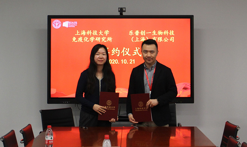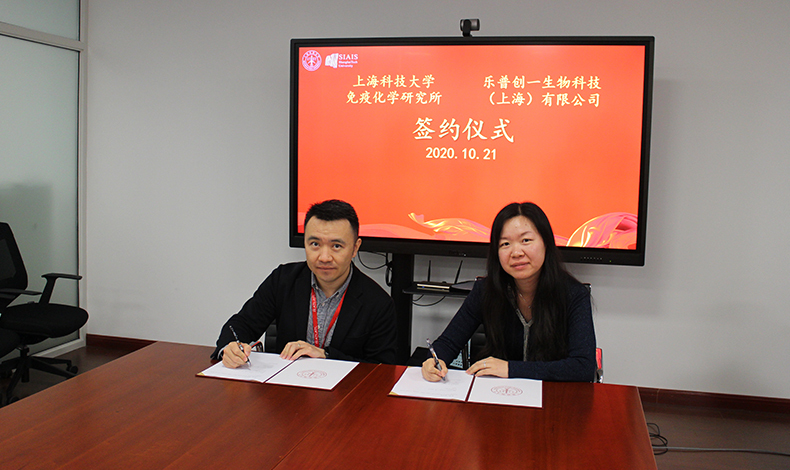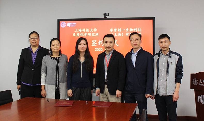 2020年10月21日,上??萍即髮W(xué)免疫化學(xué)研究所與樂普創(chuàng)一生物科技(上海)有限公司舉行科研合作簽約儀式。上??萍即髮W(xué)免疫化學(xué)研究所助理所長、高通量篩選平臺主任雷穎,上??萍即髮W(xué)免疫化學(xué)研究所高通量篩選平臺工程師孔娟,上??萍即髮W(xué)免疫化學(xué)研究所高通量篩選平臺工程師姜連連,樂普創(chuàng)一生物科技(上海)有限公司總經(jīng)理方磊,樂普創(chuàng)一生物科技(上海)有限公司抗體平臺主任曲志虎,樂普創(chuàng)一生物科技(上海)有限公司科學(xué)家王旭輝等出席簽約儀式。